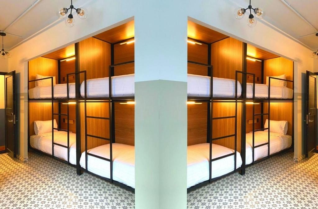 ドミトリーは男女共用と女性用があり、8・6・4人部屋がある。